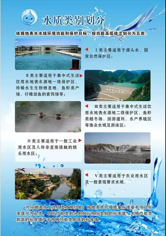 按照《中華人民共和國地表水環境質量標準》,依據地表水水城環境功能和保護目標,我國的地表水水質分為:I,II,III,IV,V和劣V類。
