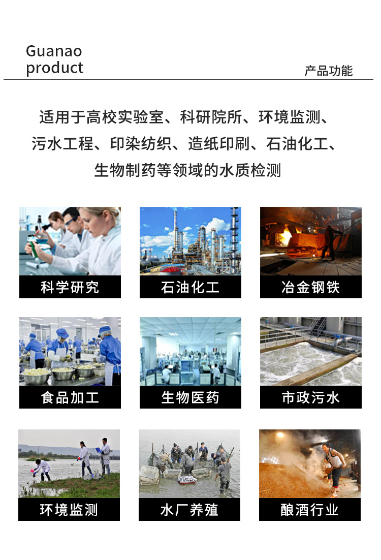 GA-COD COD測定儀可快速準確測定地表水、地下水、城市污水及工業(yè)廢水中的COD,濃度直讀;可廣泛用于水廠、食品、化工、冶金、環(huán)保及制藥行業(yè)等部門。