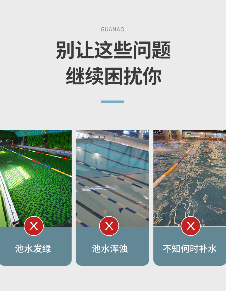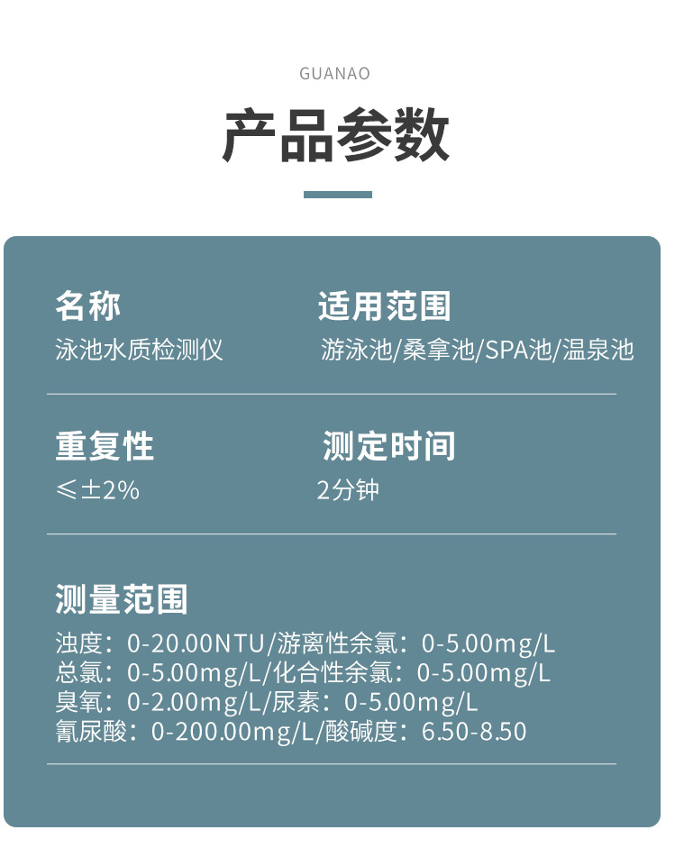 4、檢測精準,項目齊全。貫奧泳池水質監測儀器設備可檢測12個常規項目,參數可自由定制。